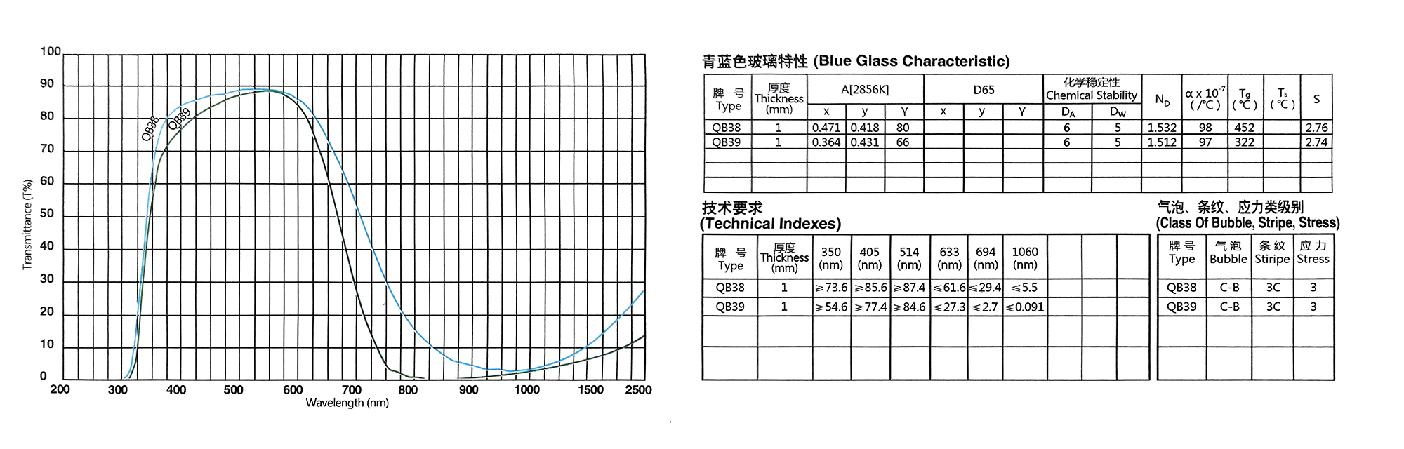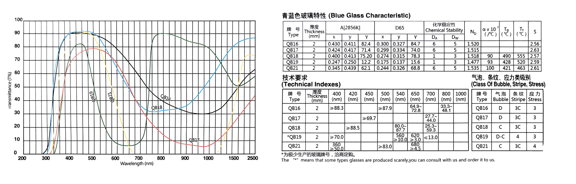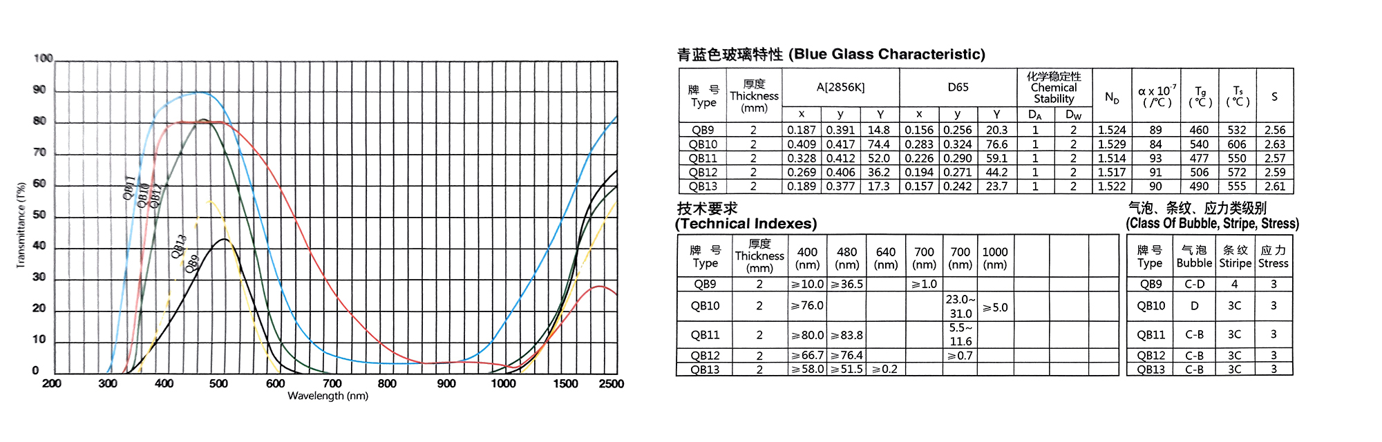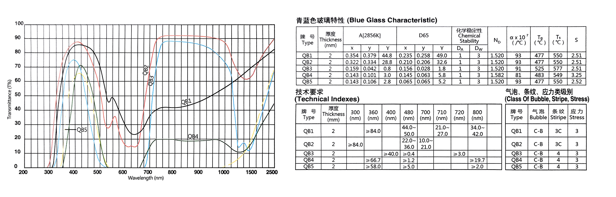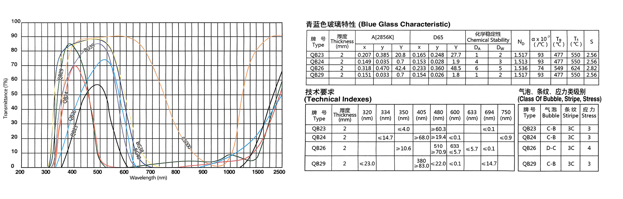 Eigenschaften von optischen Farbglasfiltern der QB-Serie