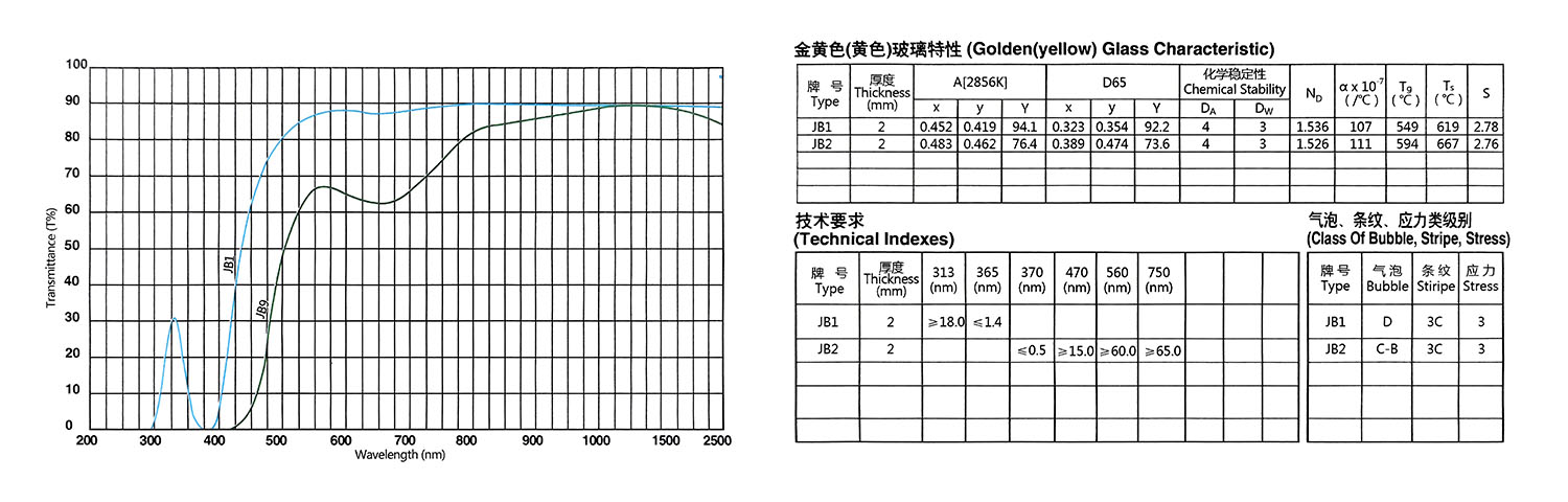 Eigenschaften von optischen Farbglasfiltern der JB-Serie