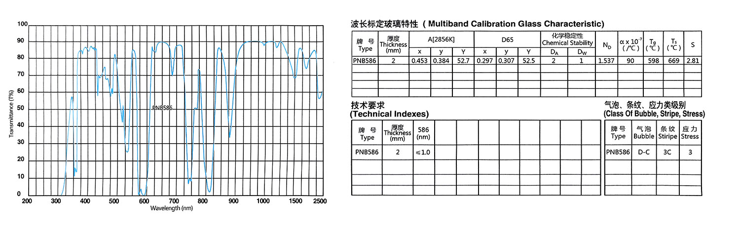 Transmissionskurve von optischem Farbglas der PNB-Serie
