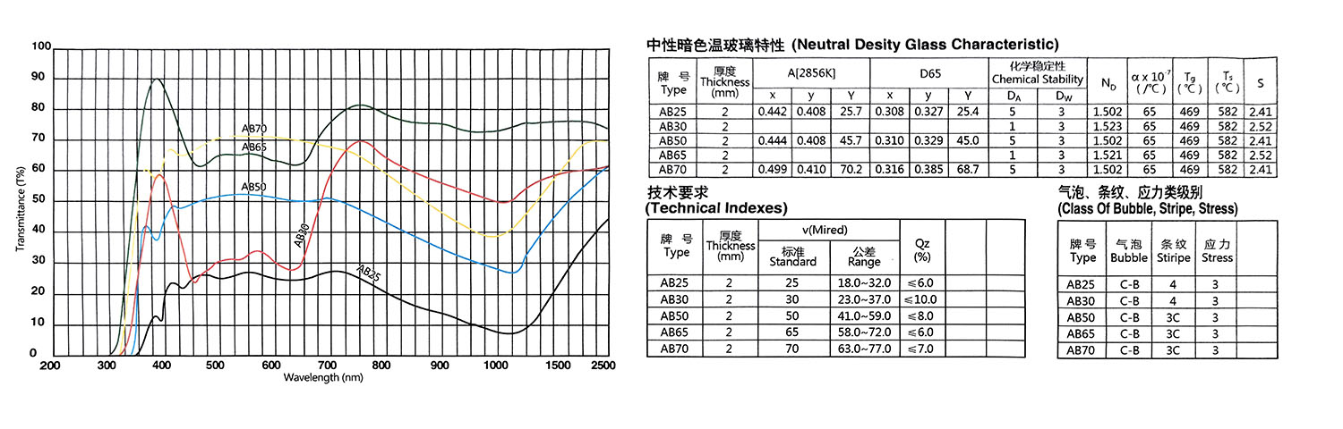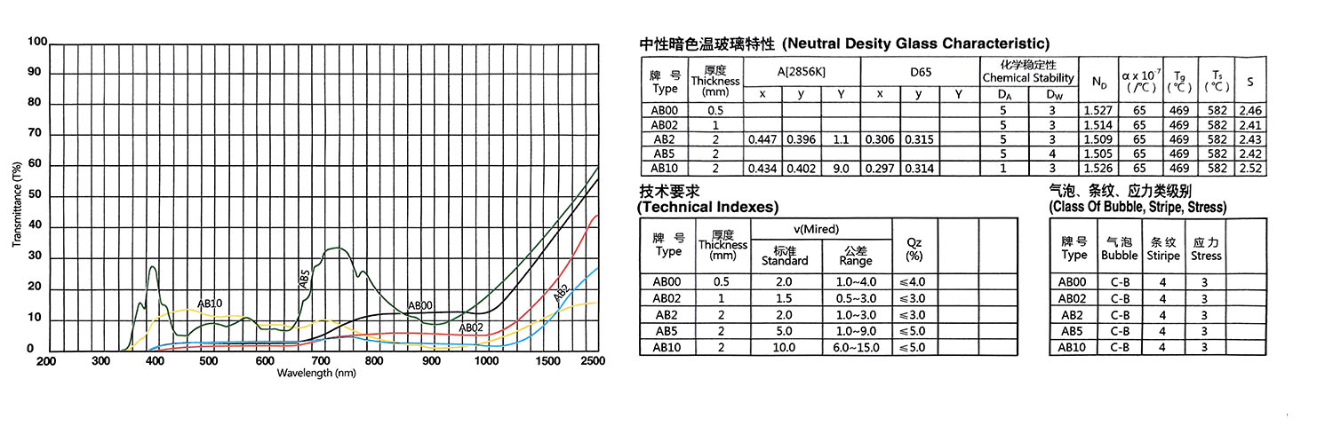 Eigenschaften von optischen Farbglasfiltern der AB-Serie