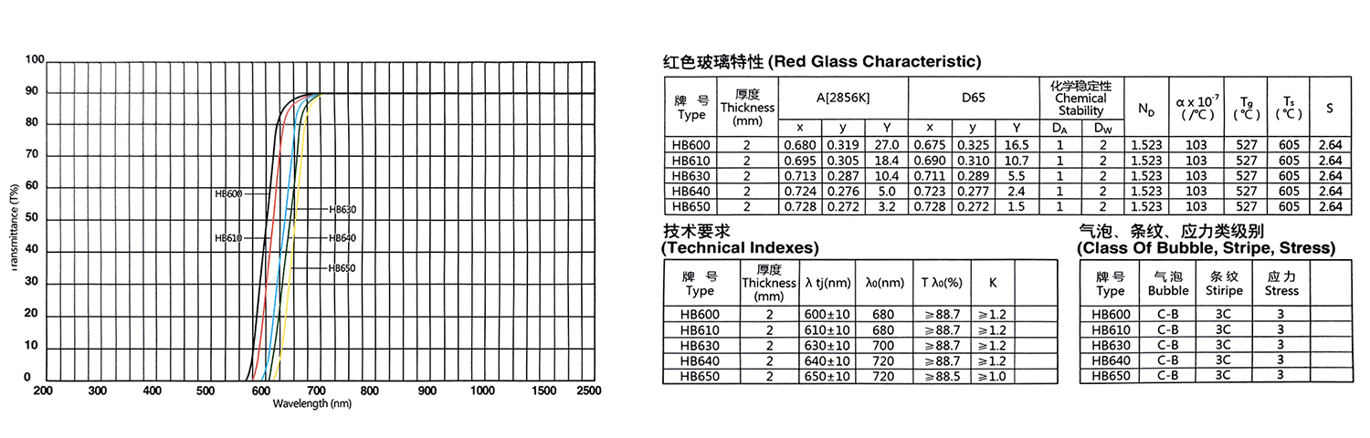 Transmissionskurve des optischen Farbglases der HB-Serie.