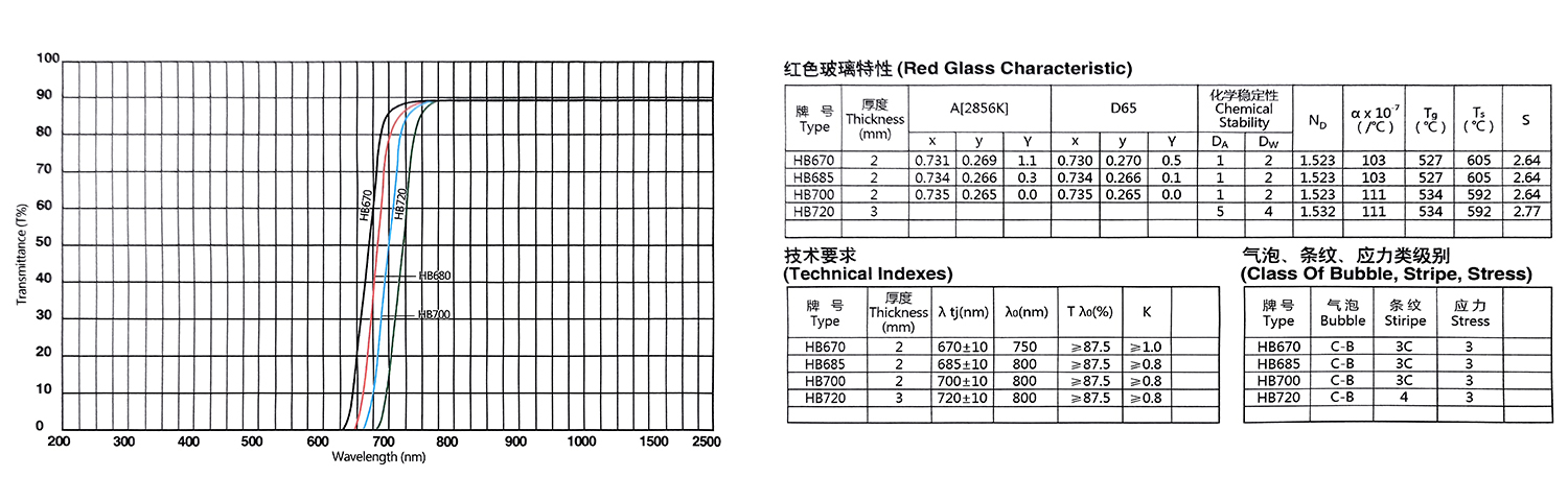 Eigenschaften der optischen Farbglasfilter der HB-Serie