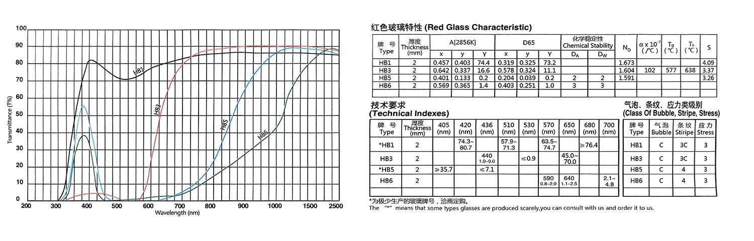Eigenschaften von optischen Farbglasfiltern der HB-Serie