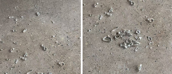 When irregularly shaped tempered glass lands on its sides or corners, it is prone to shattering. If the larger surface area hits first, it is highly unlikely to break.